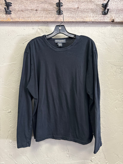 Description : Simple long-sleeve black crewneck shirt made from a lightweight cotton jersey with a simple hem and minimal detailing.