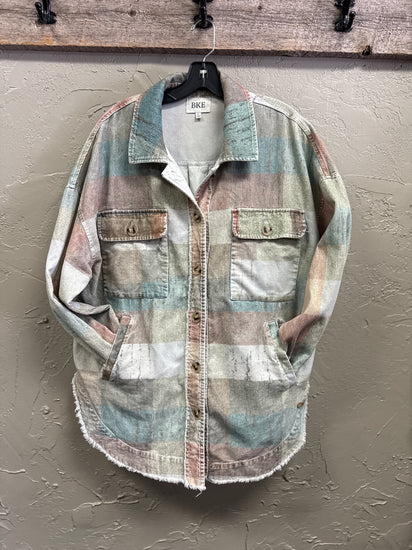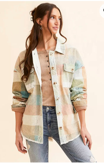 Description : A trendy checker print and an oversized fit will have you layering this shacket up time and time again. A modern look when paired with your favorite denim, this shacket will add structure in your laid-back style.