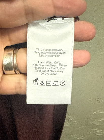 Description : Sleeveless long knit tunic in a deep burgundy/plum color with a crew neckline, ribbed collar and hem, and visible side slits; straight relaxed silhouette shown.