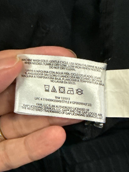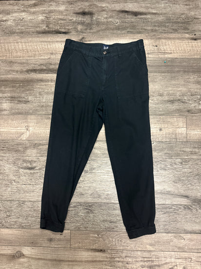 Description : Black casual pants with a mid-rise waist, front patch pockets, belt loops, a button-and-zip fly, tapered legs and elasticized cuffs at the ankles; made from a matte woven cotton blend.
