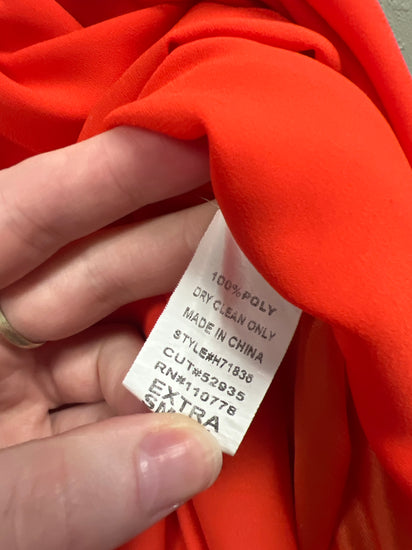 Description : High-low midi skirt in a vibrant orange lightweight fabric. Features an elastic waistband for easy on comfortability.