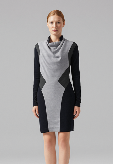 Description : Gray monochrome leather & wool evening dress.