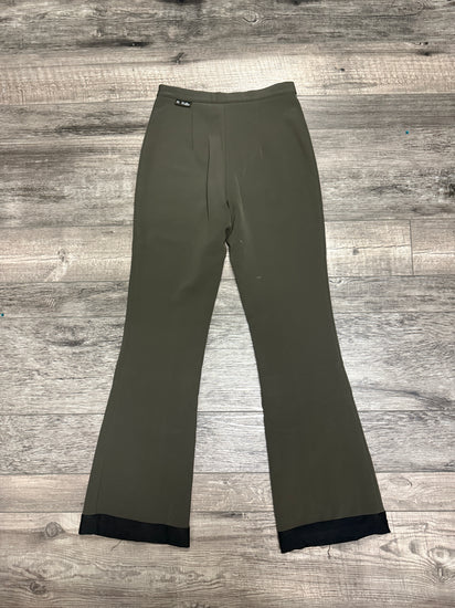 Description : Lined winter pants in a muted olive green with a high waist, snap-button closure, subtle front seam detailing, slight flare legs. This classic pant is one of M. Miller's best selling stretch ski pants.