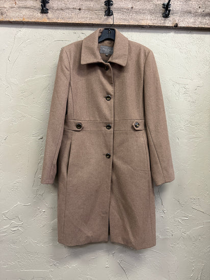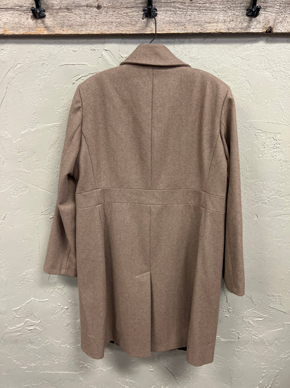 Description : Gorgeous wool coat in perfect condition by Marvin Richards New York. Four buttons down front. Pockets. Vented back. Fully lined. Perfect for winter.