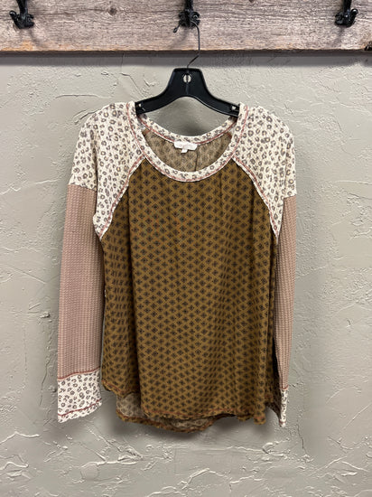 MYSTEE MIXED PRINT LONG SLEEVE TOP