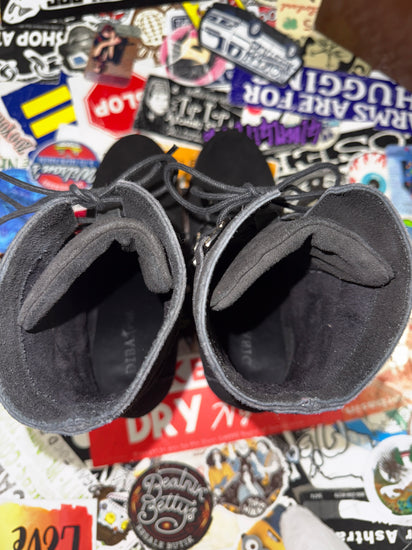Description : New without tags, suede lace-up wedge boot with a short 7" shaft