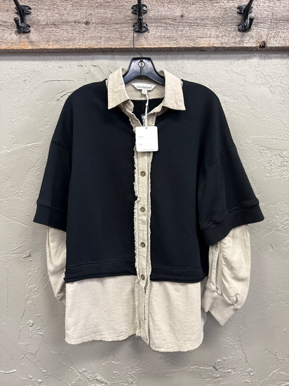 Description : New with tags. A faux layered French terry contrast top is a stylish and versatile piece that offers the look of layering without the bulk. The French terry fabric provides a comfortable and casual feel, perfect for everyday wear. The faux layering detail adds a fashionable touch, creating a layered look with contrasting fabric or colors. This type of top is great for achieving a put-together and stylish outfit with minimal effort. Pair it with jeans or leggings for a casual chic look, or dress it up with a skirt and heels for a more polished ensemble. Measurements taken from size MEDIUM