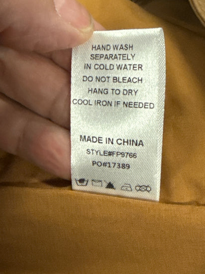 Description : New with tags, high-waisted faux leather pants in a warm camel with a front button and zip closure, belt loops, stitched front seams, and a slightly flared leg. Measurements are taken from the size MEDIUM
