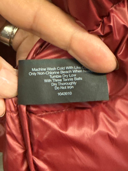 Description : New with tags, this lightweight puffer adds just the right amount of warmth when you need it. Bonus: it easily packs into an attached bag for on-the-go warmth. Crew neck with hood. Long sleeves. Zip front. Welted pockets.
