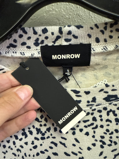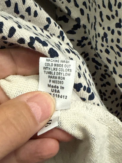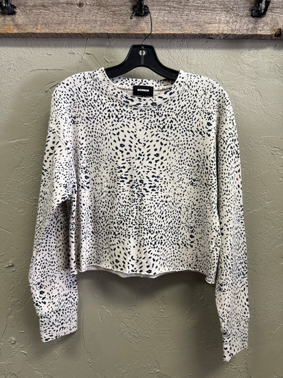Description : New with tags cropped long-sleeve top with a black cheetah-like allover print, crew neckline, and a relaxed slightly boxy fit with a raw hem detailing
