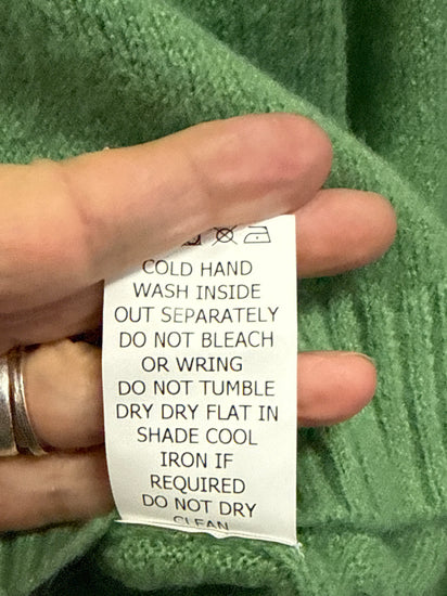 Description : New with tags cropped, mint green turtleneck sweater with a ribbed texture and balloon sleeves that taper at the wrist.
