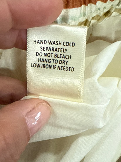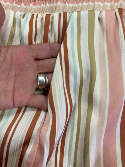 Description : New with tags, these tie-waist shorts feature an elastic/drawstring waist, front slant pockets and are lined.