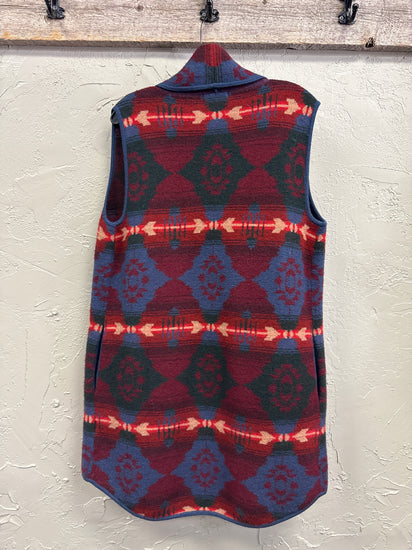 Description : Wrap yourself in the warmth and vibrancy of the Orvis Women's Merino Wool Vest, a versatile piece that brings a touch of Southwestern flair to any outfit. The size L vest is an ideal layer for those transitional seasons, crafted from soft wool that promises comfort and durability. Its multicolor palette, featuring an eye-catching Aztec pattern, is a testament to bold style.