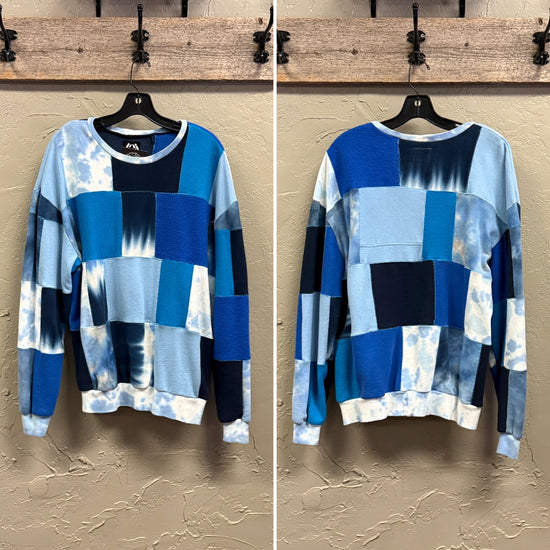 Description : The Patchwork Crewneck is hand made in house from upcycled & reclaimed sweatshirts/sweatpants. These pieces feature a unique patch work design with a classic crew neck style. Each piece is one-of-a-kind, making it both environmentally friendly and fashionably individual