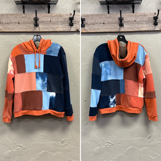 Description : The Patchwork Hoodie is hand made in house from upcycled & reclaimed sweatshirts/sweatpants. These pieces feature a unique patch work design with the functionality of a hoodie. Each piece is one-of-a-kind, making it both environmentally friendly and fashionably individual.