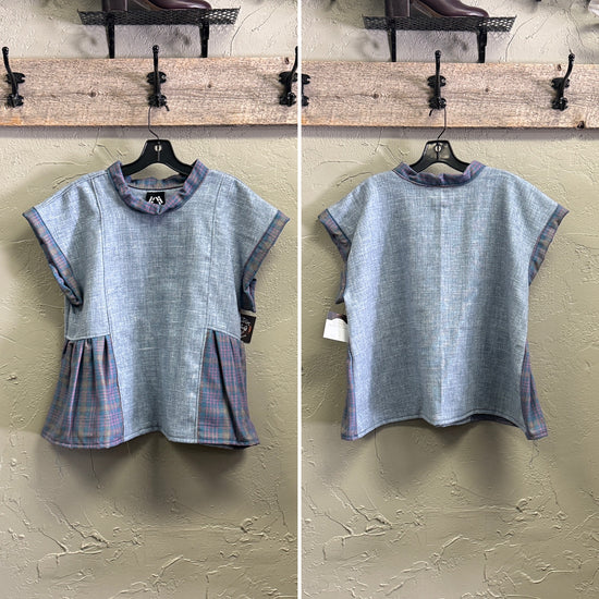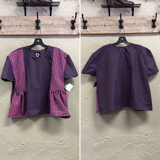 Description : Boxy short-sleeve tops, made from vintage deadstock fabrics - mostly wool and wool blends . They are all experiments, so have slightly different details. MEASURMENTS FOR SMALL: Sleeve: 1"/5" Bust: 40" Shoulder to Hem:23" Shoulder: 19.5" MEASURMENTS FOR M/L: Sleeve: 1"/8" Bust: 42" Shoulder to Hem: 24" Shoulder: 23.5"