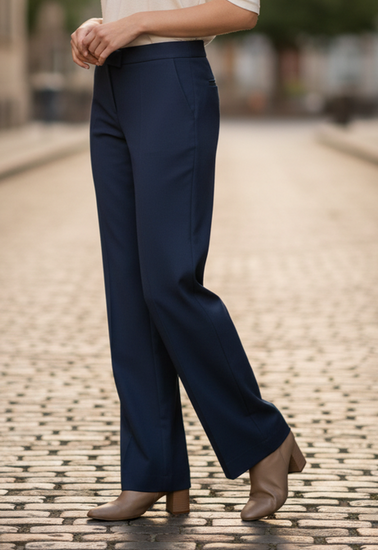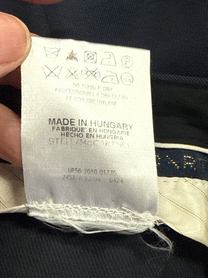 Description : A beautiful pair of STELLA McCARTNEY tailored straight-leg trousers with a mid-rise waistband, subtle front crease lines, side pockets, and a hook-and-bar closure at the front.