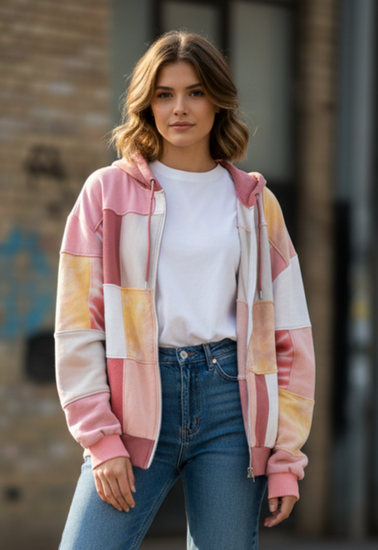 Description : The Full Zip Hoodie is hand made in house from upcycled & reclaimed sweatshirts/sweatpants. These pieces feature a unique patch work design with the functionality of a hoodie. Each piece is one-of-a-kind, making it both environmentally friendly and fashionably individual