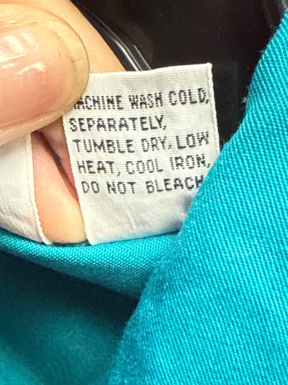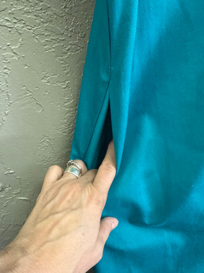 Description : Button-front, short-sleeve shirt dress in a vivid teal color with a collared neckline, two buttoned chest patch pockets and a straight, knee-length silhouette and side pockets.